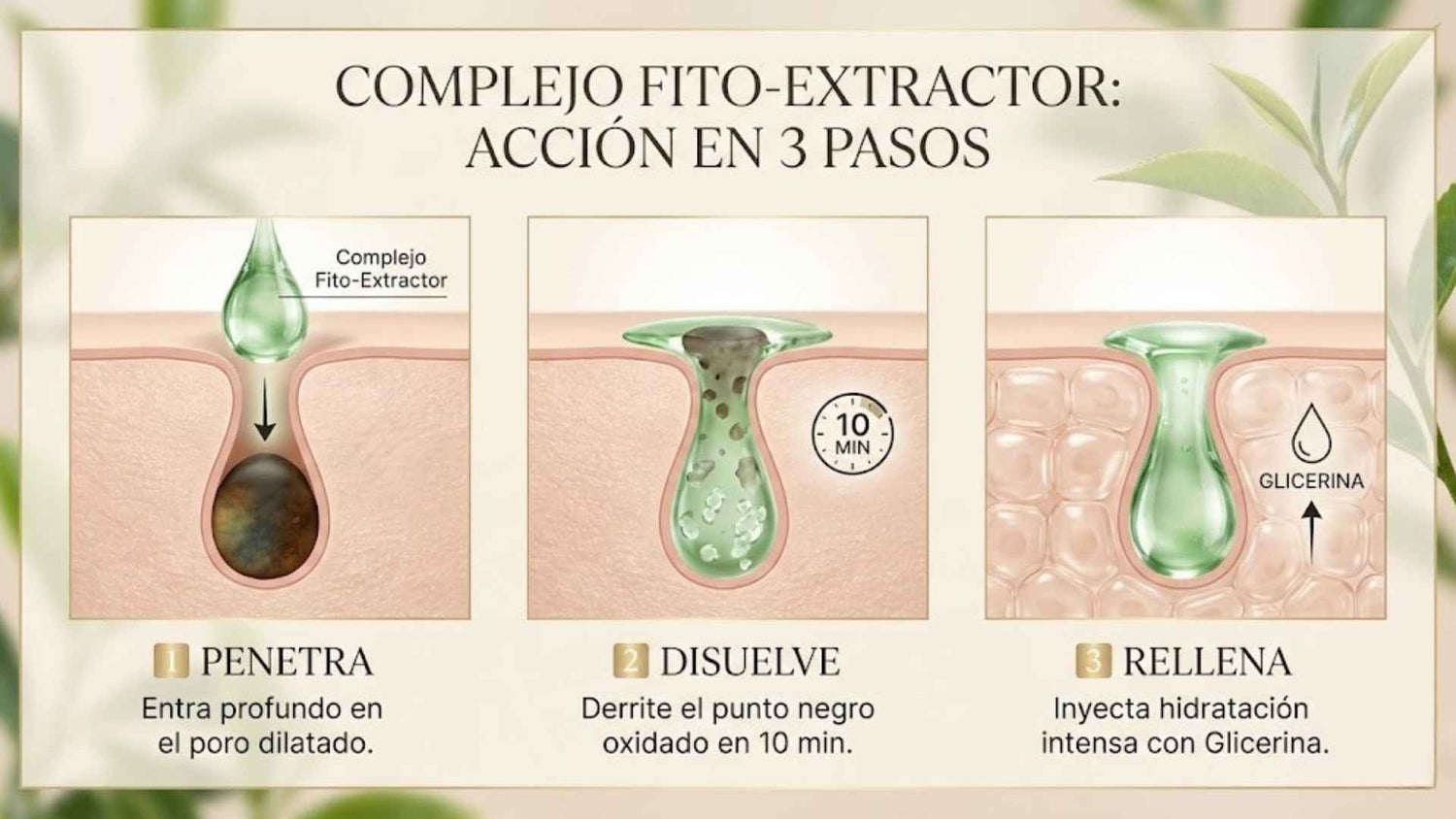 1️⃣ Penetra: Entra profundo en el poro dilatado.